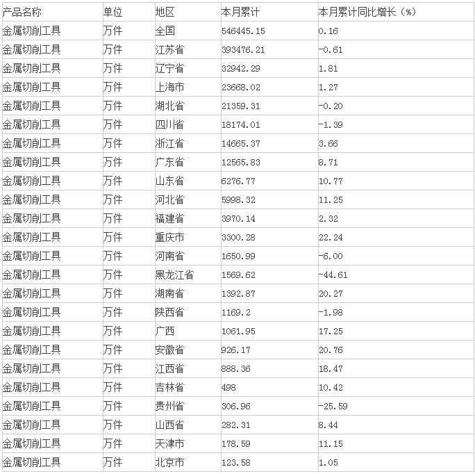 研究數(shù)據(jù)顯示:2015年1-7月生產(chǎn)金屬切削工具54.64 億件,同比增長0.16 %。