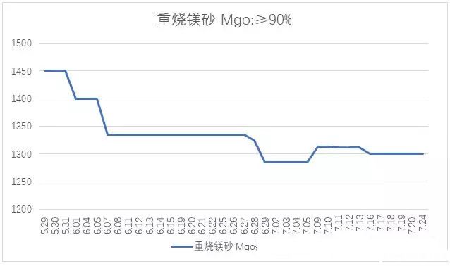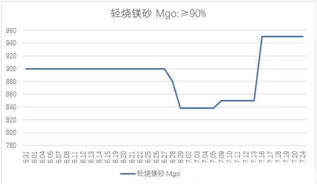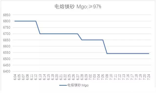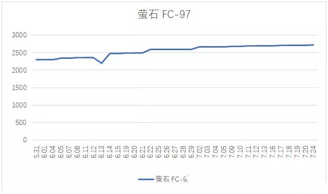 導(dǎo)讀:河南銳石集團(tuán)統(tǒng)計7月份相關(guān)行業(yè)商品價格走勢圖【重?zé)V砂】【電熔鎂砂】【輕燒鎂砂】【廢舊鎂碳磚】【無煙煤】【棕剛玉】【白剛玉】【螢石