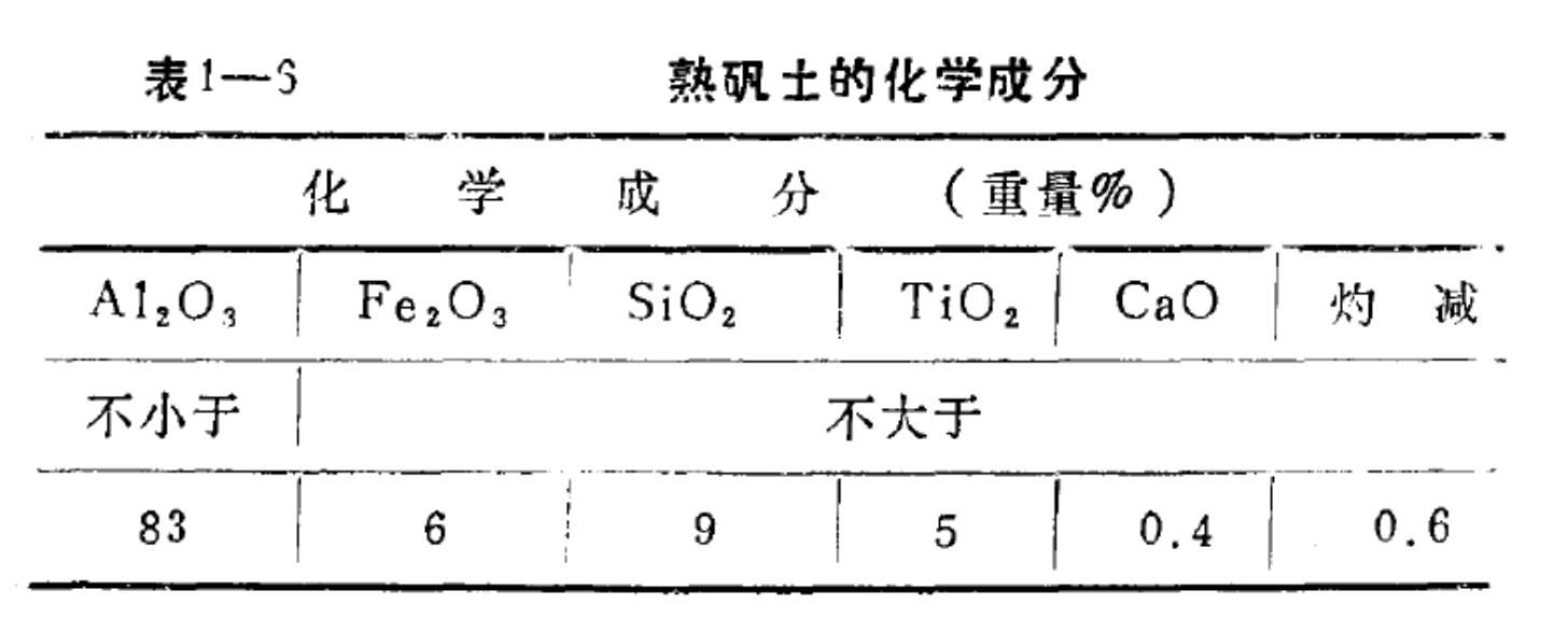 討論結(jié)果推薦表1一6礬土質(zhì)量標準。