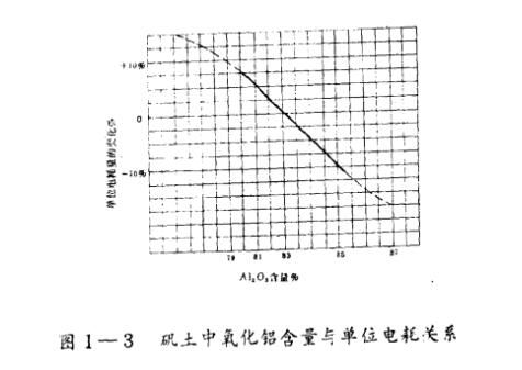 礬土中氧化鋁含量與剛玉冶煉電耗有圖l一3的關(guān)系。這種關(guān)系僅僅是概念性質(zhì)的,提示有這種趨向。