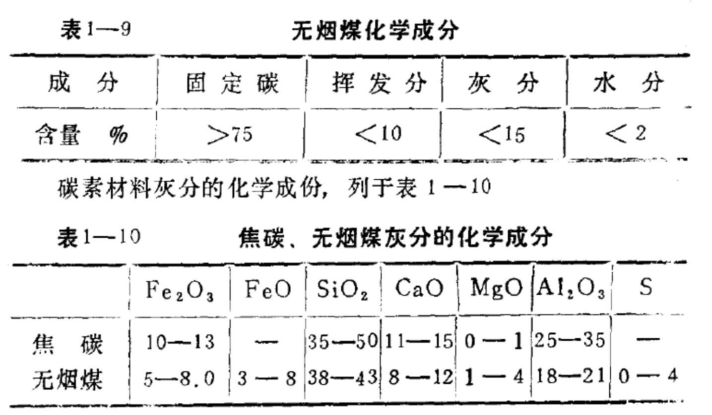 碳素材料是剛玉冶煉還原劑,碳素材料種類很多,常用碳素材料有石油焦、焦炭、無煙煤。對這種材料成分的要求列于表1一7、表1一8、表1一9。