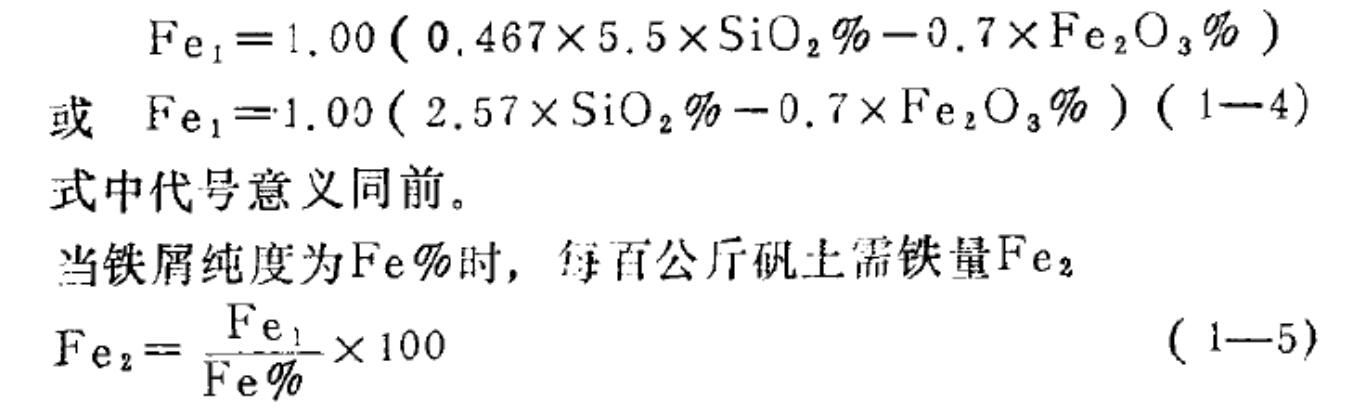 3、根據(jù)選定的鐵硅比5.5計算需要鐵量Fe1